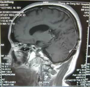 قبل ستة عشر شهرًا من دخوله المستشفى بسبب ورم سحائي غير نمطي في المنطقة المثلثية اليسرى، بدأ السيد جي يشعر بضعف في مرونة ساقه اليمنى، وكأنه يعاني من ضعف في حركتها. لم يسعَ للعلاج فورًا. مرت ستة أشهر، وتفاقمت الأعراض تدريجيًا، مما أثر على مشيته، وكان لصعوبة تحريك ساقه اليمنى أثر سلبي واضح على حياته. ذهب إلى مستشفى محلي وأجرى تصويرًا بالرنين المغناطيسي للدماغ، والذي أظهر وجود ورم في المنطقة المثلثية من البطين الجانبي الأيسر. نُصِحَ بالتدخل الجراحي. رغبةً منه في الخضوع لجراحة الأعصاب لعلاج هذا الورم السحائي غير النمطي، تم إدخال المريض جينرونغ جي إلى مستشفى بكين الدولي للأمراض النفسية.